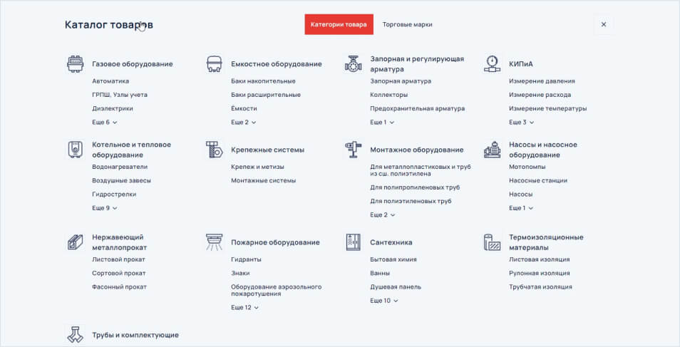 Для быстрой навигации по разделам каталога можно использовать блок на верхней панели