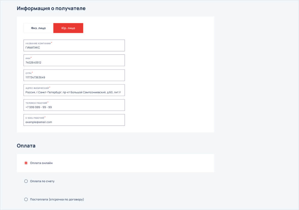 Для юридических лиц предусмотрено три варианта оплаты, оплата онлайн, оплата нпо счету и постоплата в рамках соласованного кредитного лимита, если таковый был согласован. .