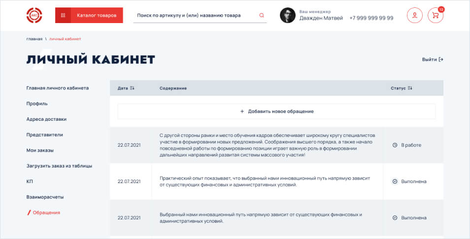 Менеджер обработает обращение и свяжется с Вами в ближайшее время, на почтовый адрес пользователя придет уведомление о статусе обращения.